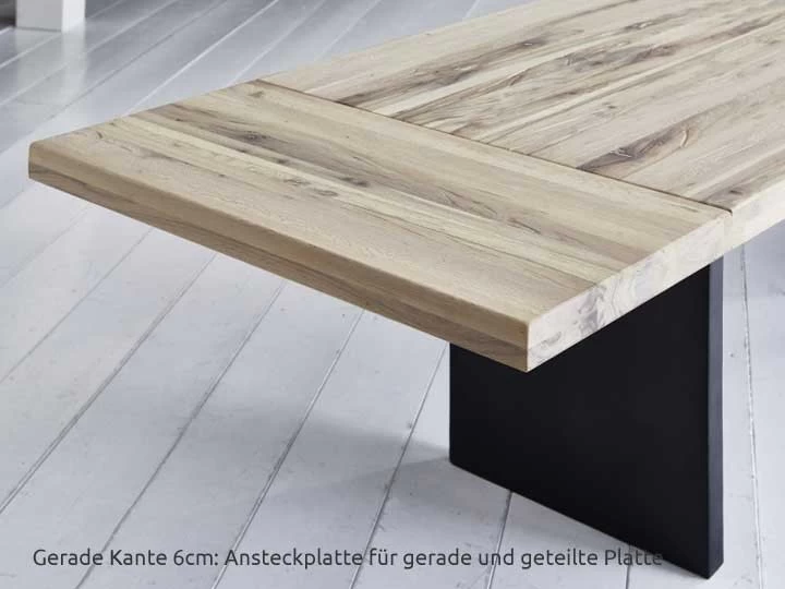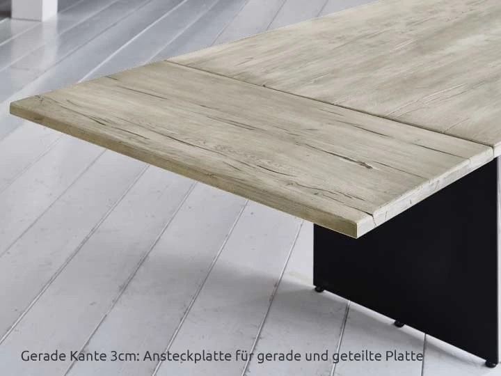 *passend für geteilte und durchgehende Tischplatten mit gerader Kante – eine geteilte Ansteckplatte ist nicht erhältlich.