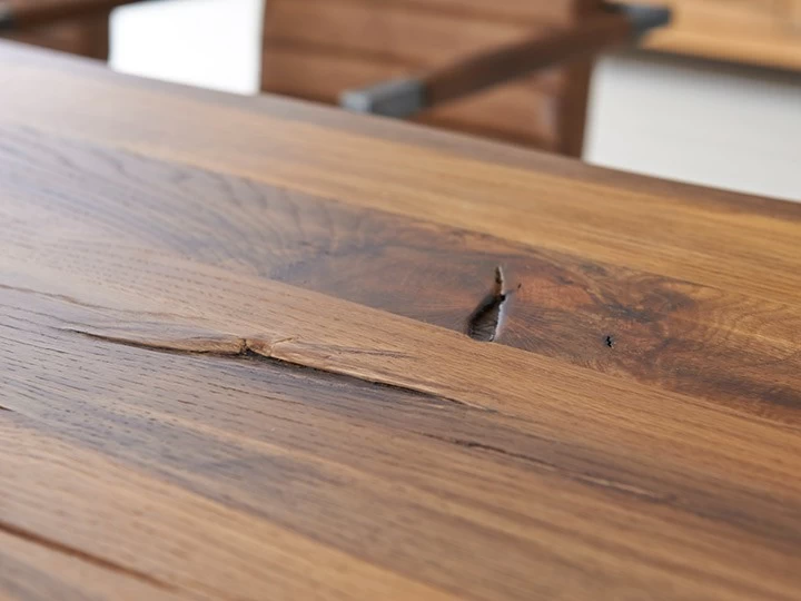 Balkeneiche ist ein besonders grob strukturiertes und hartes Holz. Als Massivholz gehören Risse und Astlöcher zum individuellen Wuchs und Charakter dieses wertvollen Rohstoffes und verleihen Ihrem Möbelstück seine einzgartige Schönheit. Diese Besonderheiten des verwendeten Massivholzes sind nicht beeinflussbar, aber dennoch zum Erscheinungsbild gehörig. Sie stellen keinen Reklamationsgrund, sondern machen Ihr Massivholzmöbel zu einem echten Unikat, von dem es keine Kopie gibt.