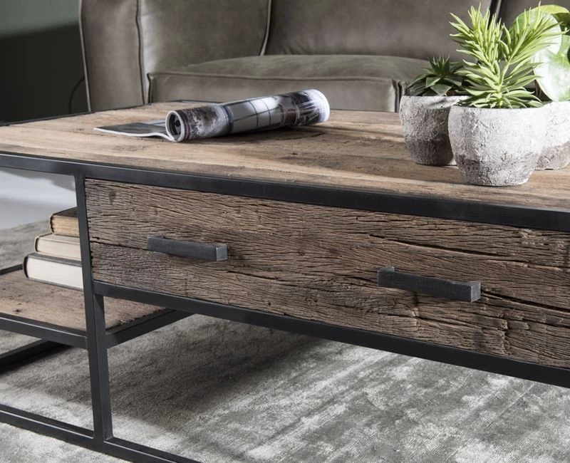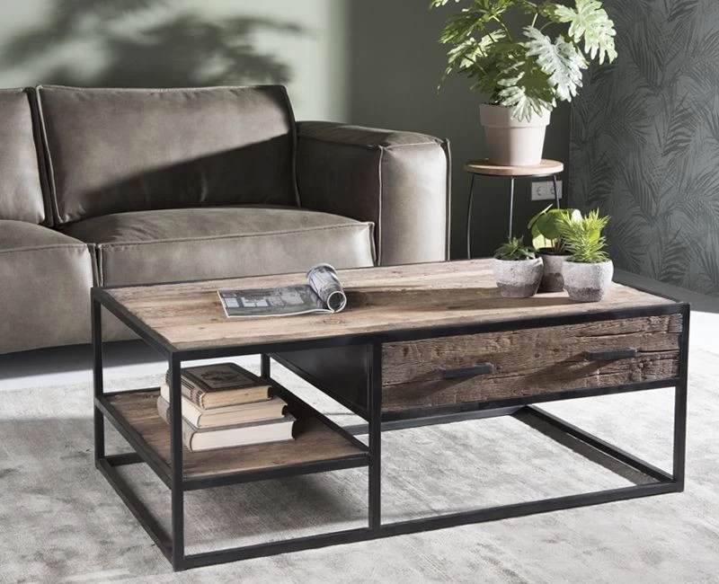 Mango Massivholz Couchtisch mit 1 Schublade und Ablage