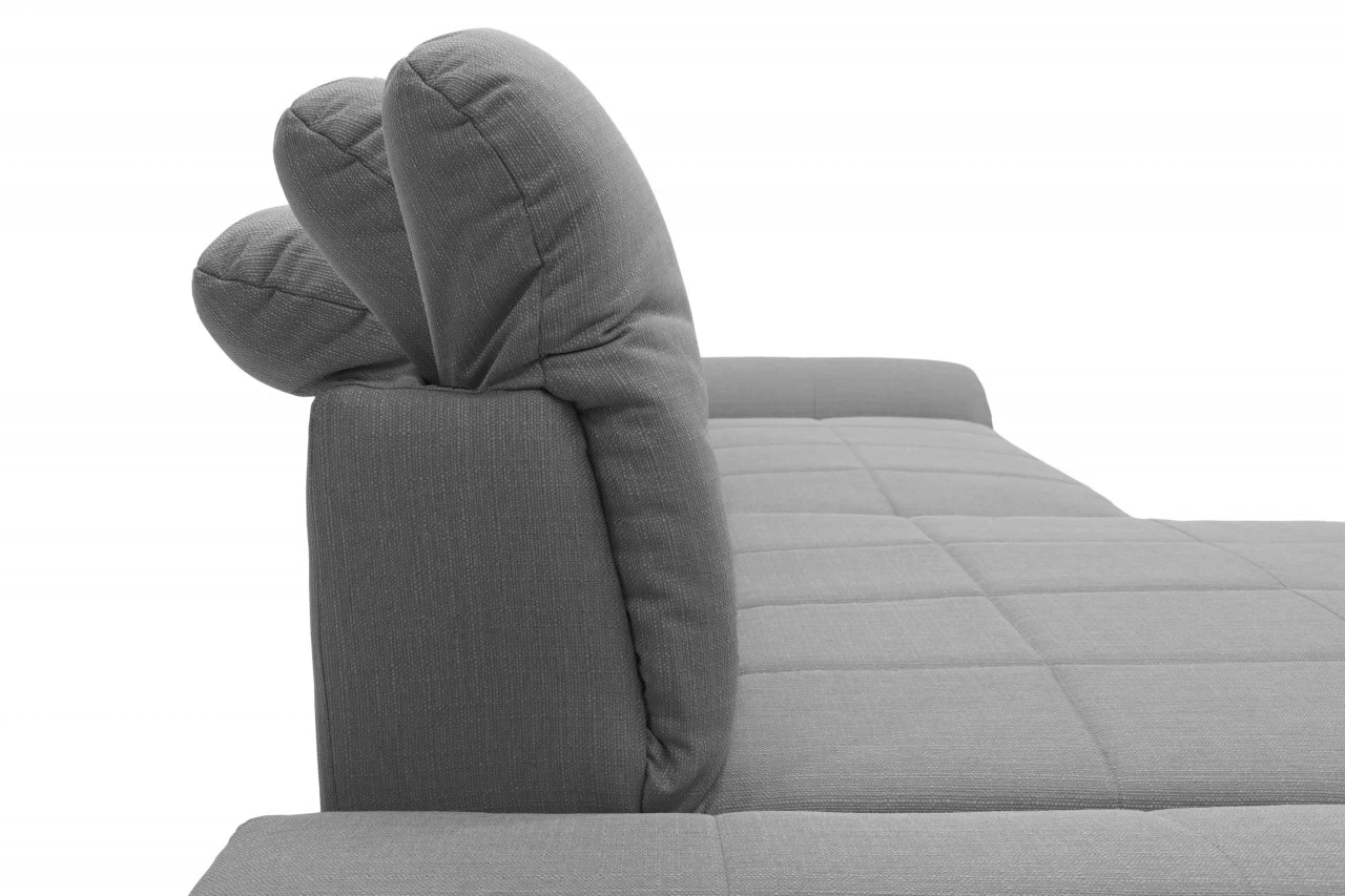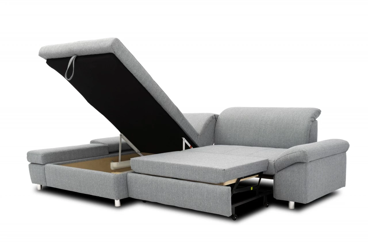 Unser Mika Ecksofa kann sich sehen lassen. Mit ihren modernen Füßen für soliden Stand und einer aufwendigen Steppung besticht sie mit einer zeitgemäßen Optik für das Wohnzimmer von heute. Zudem ist es eine wahre Verwandlungskünstlerin. Nicht nur, dass sich eine Armlehne und beide Rückenlehnen an jede gewünschte Position für maximalen Sitzkomfort anpassen lassen. Zusätzlich lässt sich das Sofa dank Bettfunktion im Handumdrehen in eine bequeme Liegelandschaft verwandeln. Im großzügigen Bettkasten lassen sich ganz einfach alle nötigen Utensilien verstauen, die man für eine gute Nachtruhe braucht. Die Mika lässt Sie nie im Stich.