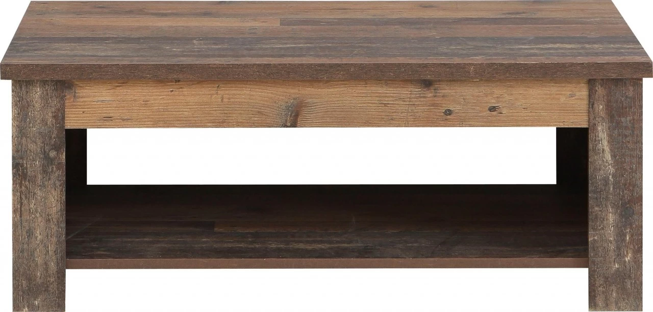 Der höhenverstellbare Couchtisch Clif von Forte ist sowohl praktisch als auch dekorativ. Besonders bei diesem Tisch ist die naturbelassene Holzoptik mit abwechslungsreichen Farbnuancen und gewollten Gebrauchsspuren. Der Wohnzimmertisch verfügt über eine rechteckige Tischplatte, die durch einen integrierten Mechanismus auf die gewünschte Höhe einstellbar ist. Außerdem ist der Sofatisch mit einer weiteren Ablage ausgestattet, auf der Kleinteile, Zeitschriften oder Fernbedienung ihren Platz erhalten.