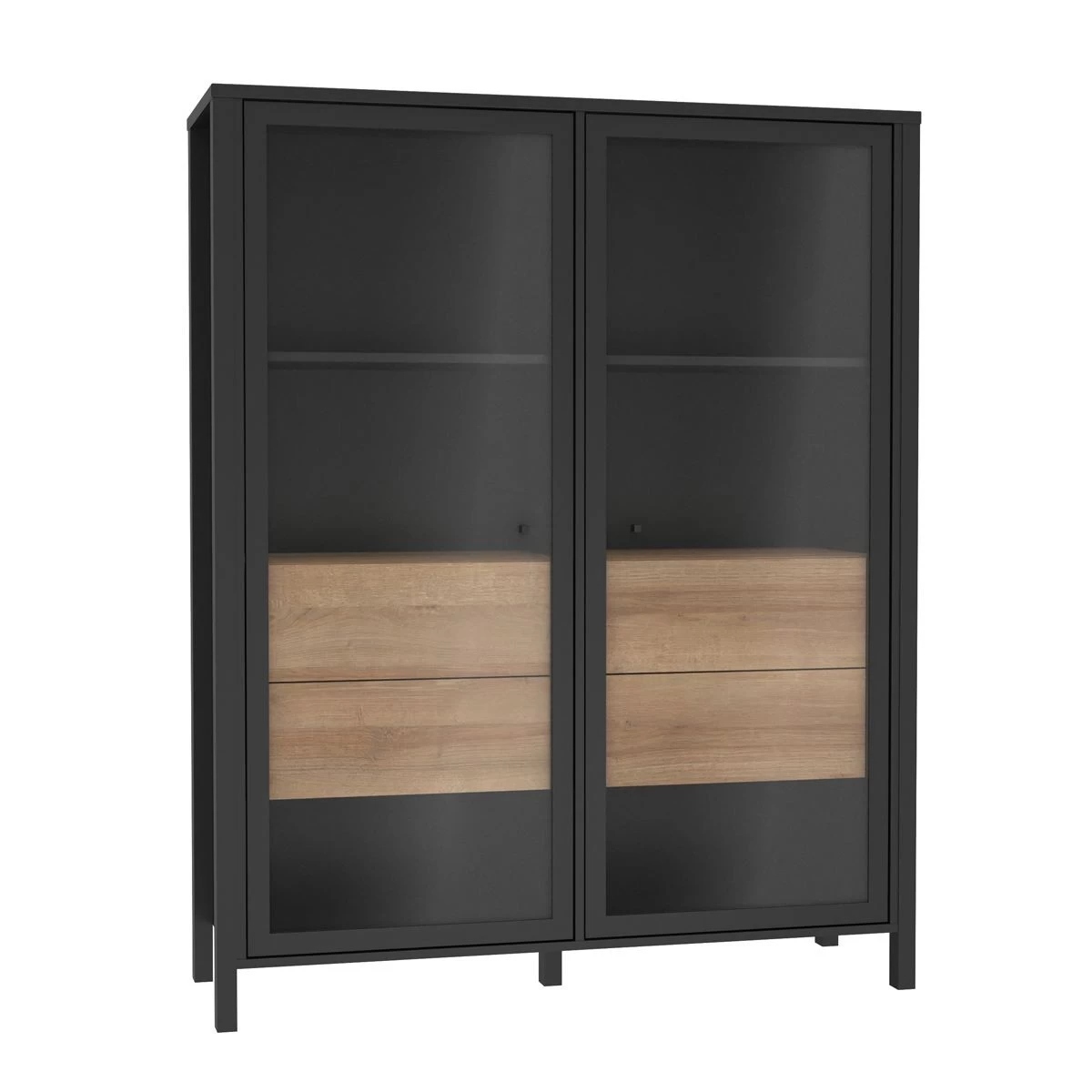 Die moderne Forte Vitrine HRKK522 aus dem Programm High Rock könnte auch Ihr Zuhause bereichern. Der schwarze Korpus und Gestell bieten ein schönen Kontrast zu den Schubfächern in Rivera Oak Holznachbildung. Hinter den Glastüren können Sie Geschirr, persönliche Sammlungen oder Ähnliches gekonnt präsentieren.
