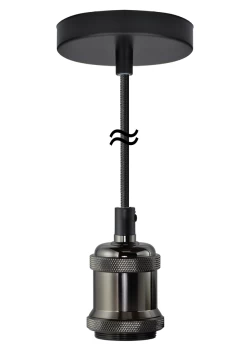 Diese dekorative Pendelfassung ist der universelle Baustein für Deine individuelle Beleuchtungsidee. Du kannst hier jedes Leuchtmittel bis 25 Watt mit einer E27 Fassung verbauen. Das stoffummantelte Kabel ist 200 cm lang und ebenso individuell einstellbar. Mit dem vorhandenen Metallsockel ist die Deckenmontage einfach und problemlos möglich. Die Fassung ist Schwarz ummantelt und setzt einen dezenten Akzent.