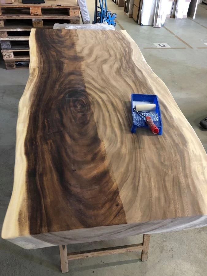 Da es sich um natürliche Stammware handelt, kann es durchaus möglich sein, dass der Tisch mit der Zeit einige Trocknungsrisse oder Wuchsrisse erhält. Aber keine Sorge, mehr wie eine leichte Ausdehnung seiner Spannung passiert nicht.