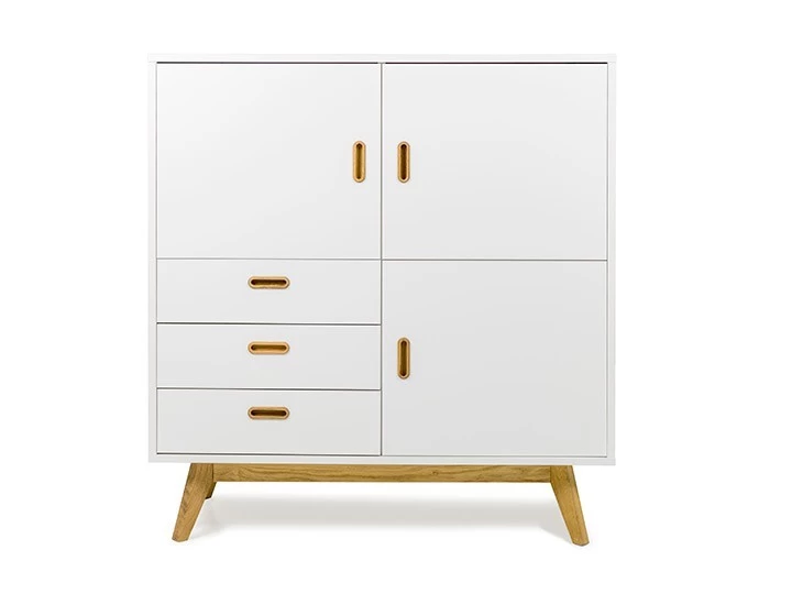 Bess Highboard Wohnzimmerschrank 114 Retro Eiche & Weiß
