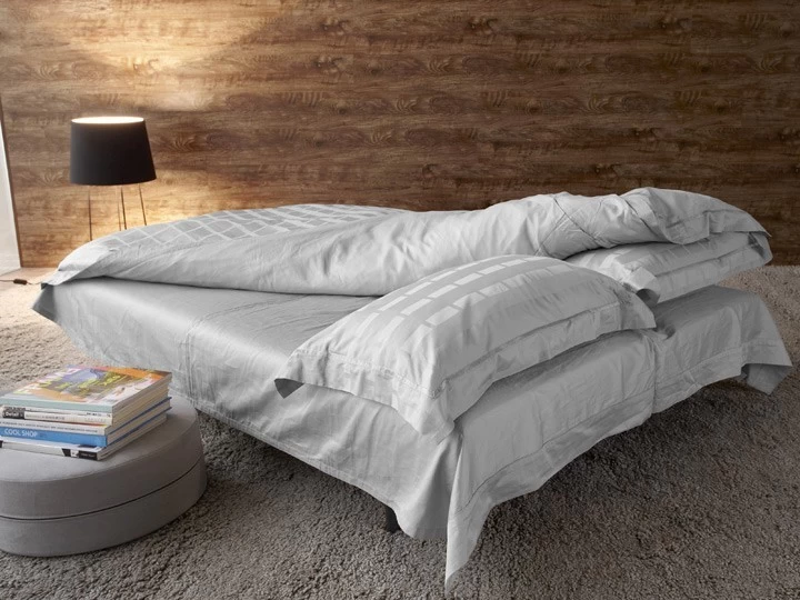Die hochwertige, allerneuste Generation der Taschenfederkern-Federung ummantelt von Kaltschaum, ähnlich einer Latexmatratze, gewährleistet superkomfortables Sitzen und Liegen ohne unerwünschtes Einsinken. So bietet dieses Möbelstück höchsten Komfort beim Sitzen, Loungen oder Schlafen. Dieser Taschenfederkern besteht aus vielen kleinen und leichten Federn, die einzeln in kleine Stoffhüllen eingenäht werden. Durch die Trennung der einzelnen Stoffhüllen gibt es weitaus weniger unerwünschte Bewegung der Matratze. Besonders wenn mehrer Personen dieses Möbelstück gleichzeitig nutzen, ist diese Punkteelastizität von großem Vorteil. Durch die separaten Stoffhüllen bewegen sich die Federn unabhängig von einander. Punkt für Punkt. Die Matratze reagiert hierdurch auf jede Bewegung und alle Konturen des Körpers und leistet in jeder Position die optimale Unterstützung. Der minimale Abstand zwischen den Federn ergibt eine Matratze mit mehr aktiven Stützpunkten als normale Federkernmatratzen.