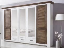 Kleiderschrank Laguna 5 türig Pinie weiss braun mit Spiegel