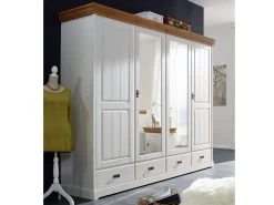 Kleiderschrank Melina 4 türig Kiefer massiv weiß gewachst 255cm breit mit Spiegel
