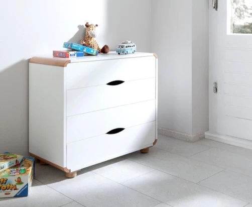 4 Schubladen bieten ausreichend Stauraum für die vielen Dinge im Kinderzimmer.