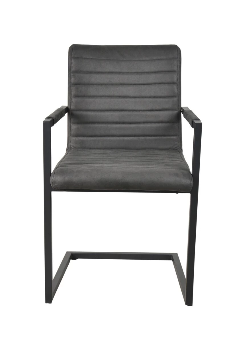 Edel und stilvoll wirkt dieser Bezug in Wildlederoptik der Farbe anthrazit und gibt diesem Polsterstuhl, ausgestattet mit einem stabilen Schwing-Gestell aus Stahl in antik schwarz, seine Eleganz. Der Freischwinger bietet einen hervorragenden Sitzkomfort. Ein sehr schönes Detail sind die Ziernähte im Sitz- und Rückenteil des Armlehnstuhls, sowie die überzogenen Armlehnen. Der Esszimmer-Stuhl passt sich dank seiner zeitlosen Form jeden Wohnbereich an. Kombiniert zu Factory Design oder Vintage, Shabby und sogar antik, der Stuhl harmoniert ausgezeichnet. Holen Sie sich mit diesem Esszimmerstuhl einen Eyecatcher in Ihr Zuhause. Als Sitzgelegenheit kann er auch als Einzelstuhl im Gästezimmer Verwendung finden. Im Wohnbereich oder Esszimmer bietet der Schwingstuhl einen bequemen Sitzplatz für Ihre Gäste. Geeignet für Konferenzräume und Kanzleien als Konferenzstuhl, in Praxen wird der Wartebereich mit diesem Besucherstuhl zum Wohlfühlort. Die Einsatzmöglichkeiten dieser Sitzgelegenheit sind nahezu grenzenlos. Bitte beachten Sie mögliche leichte Farbabweichungen zur Darstellung auf Ihrem Bildschirm.