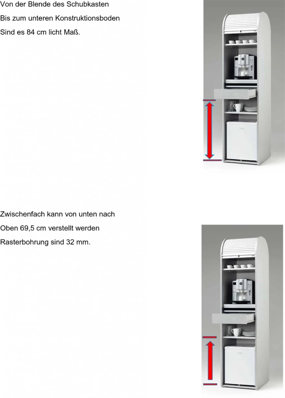 Wer´s kühl mag, bestellt den Schrank inklusive eines Getränke-Kühlschranks. Der Kühlschrank wird einfach unten in den Kaffeeschrank gestellt.