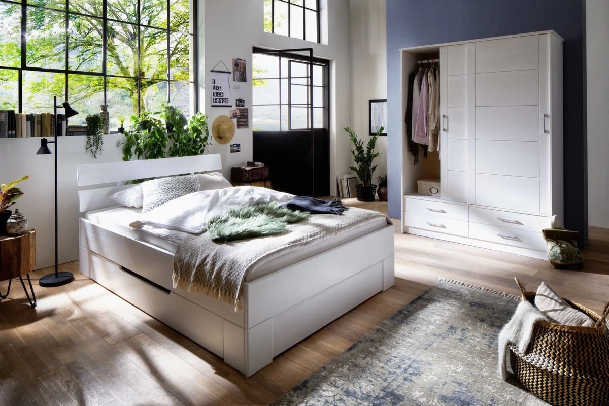 Die Serie Annika besteht aus Betten in 5 Größen, sowie 3 verschiedenen Kleiderschränken mit Zubehör für die Inneneinteilung.