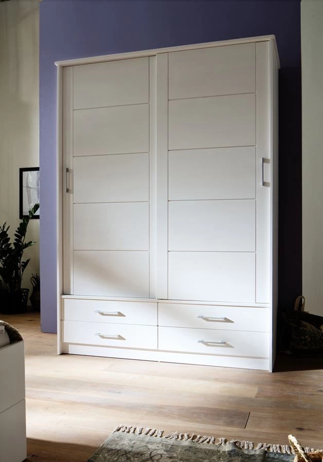 Livingruhm Kleiderschrank Annika Fichte massiv weiss Schiebetüren