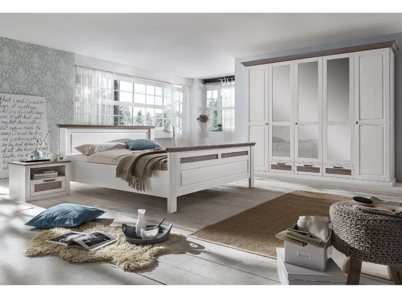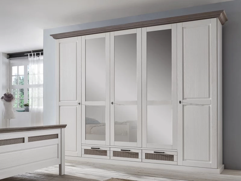 Livingruhm Kleiderschrank Landhaus Lugano 5 türig Pinie weiss braun mit Spiegel