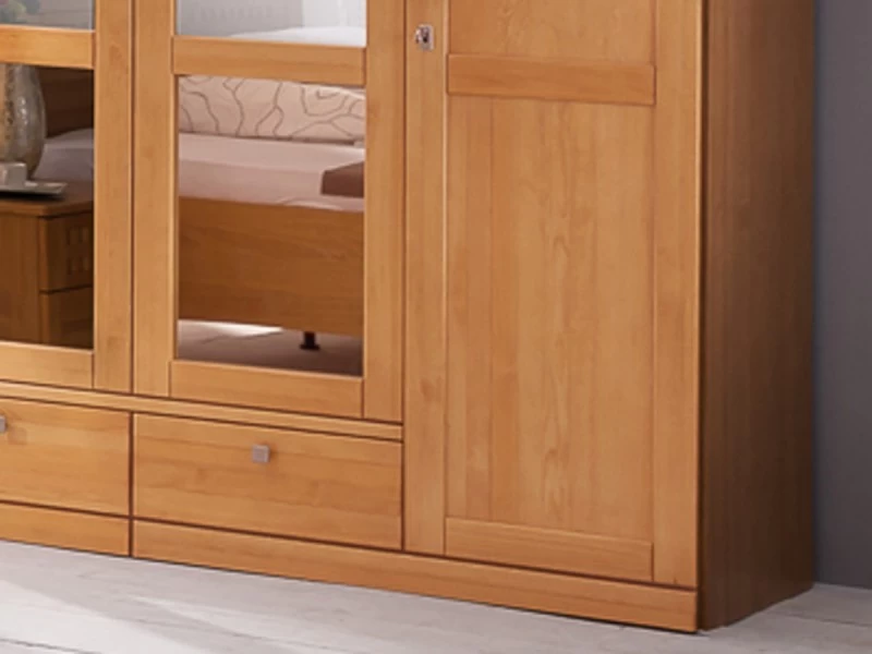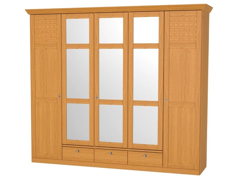 Die 3 mittigen Türen sind mit großen Spiegeln versehen. Darunter finden Sie 3 Schubladen.