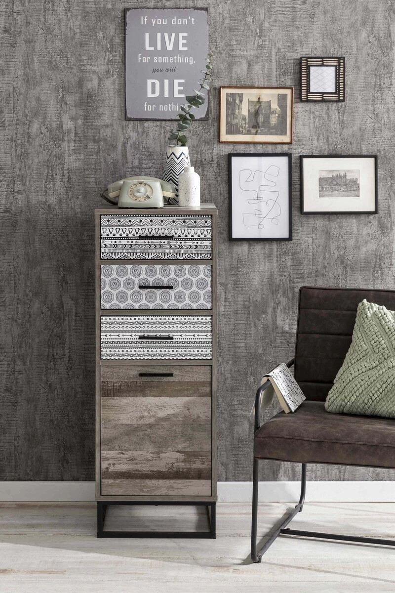 SIT Möbel Kommode mit 3 Schubladen, 1 Tür natur mit schwarz-weiß gemustert