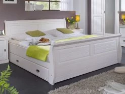 Livingruhm Massivholzbett Melina 180 x 200 cm Kiefer massiv weiß gewachst mit Bettkasten