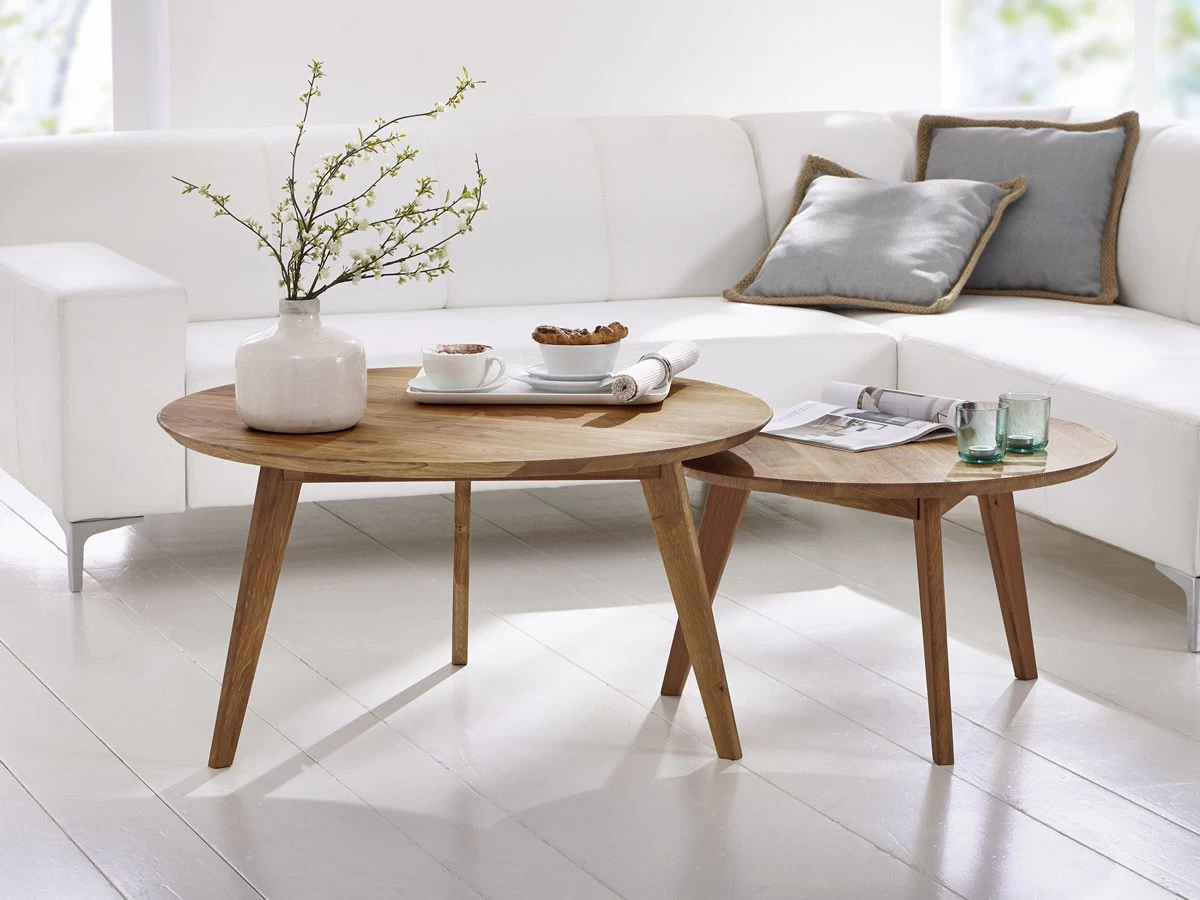 Livingruhm Nele Couchtisch Eiche massiv geölt rund 90 x 90 cm
