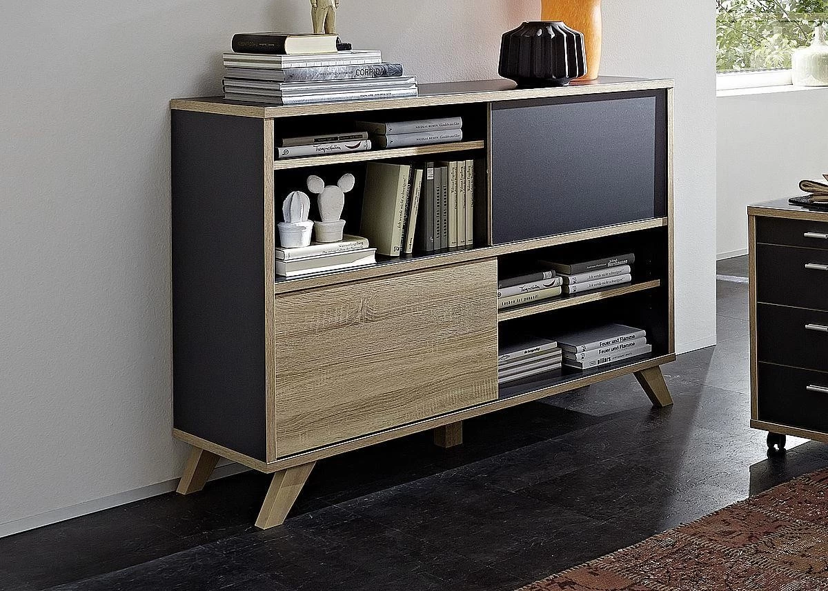 Livingruhm Schiebetürregal 4060-161, in Anthrazit/Eiche-Nb., 120 x 92 x 40 cm (BxHxT)