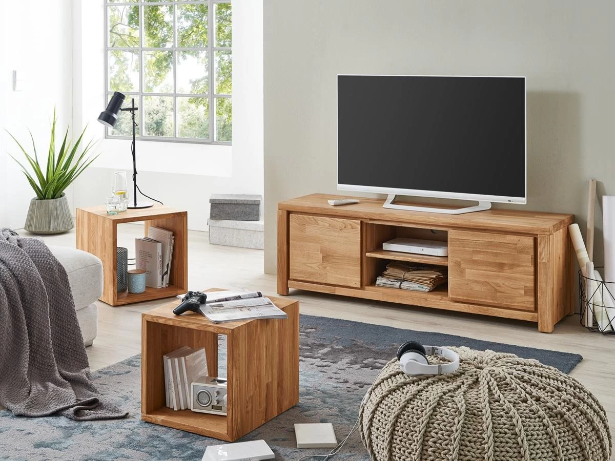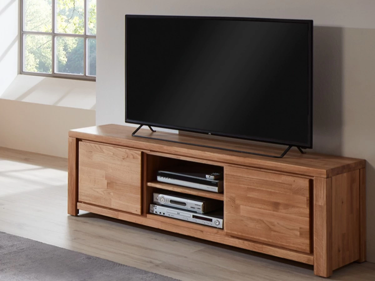 Die TV Kommode Marco wird aus massiver Eiche hergestellt.