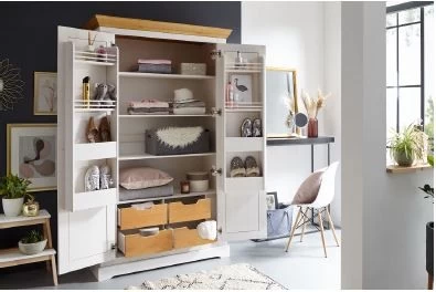 Die vielfältige Einsatzmöglichkeit als Mehrzweckschrank, Vorratsschrank, Dielenschrank oder Wäscheschrank bietet Ihnen eine Menge an Stauraum.