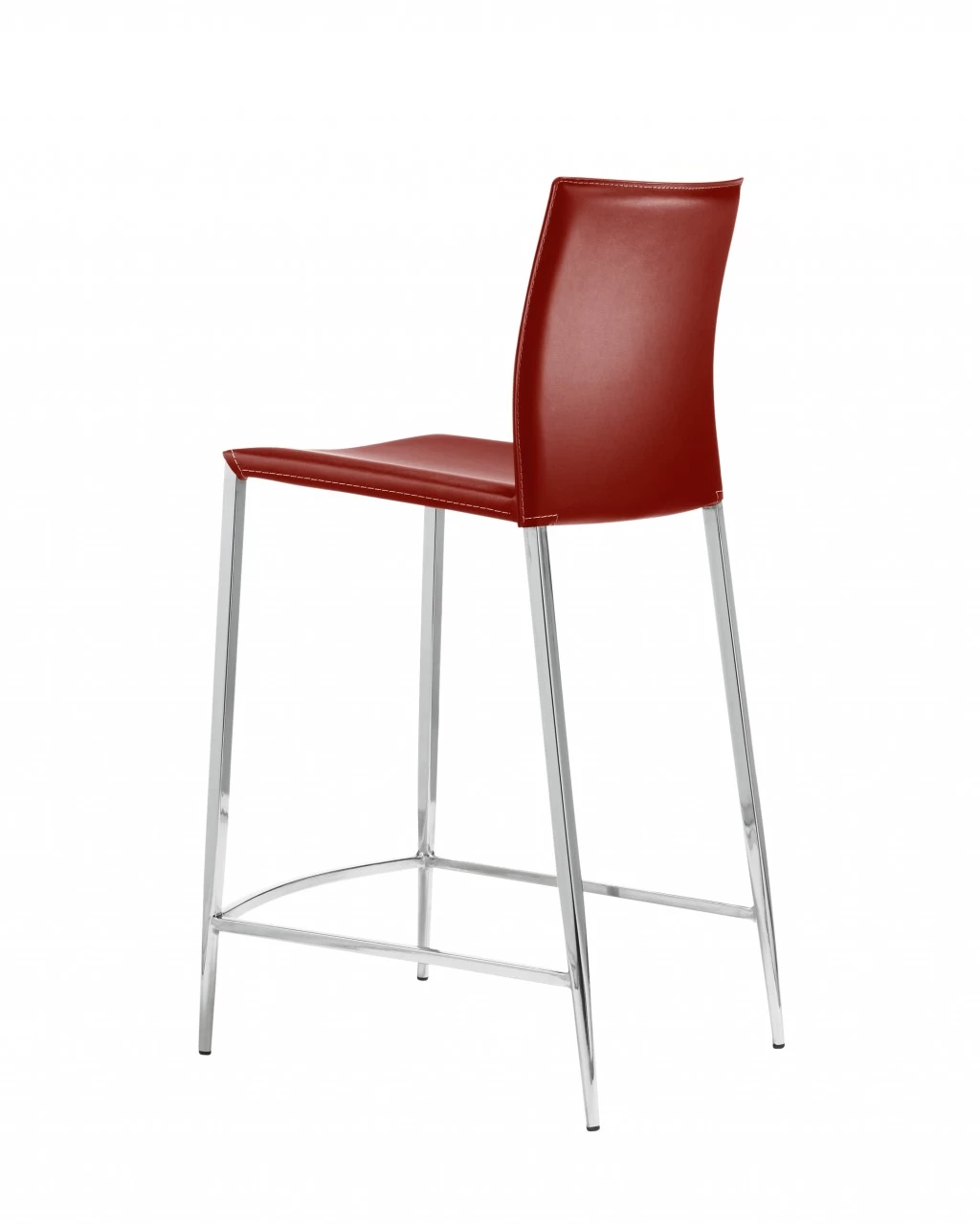 Mit seiner markanten quadratischen Rückenlehne bietet der Tresenhocker MY ALTO einen angenehmen, rückenfreundlichen Sitzkomfort. Eine Fußleiste zur Verstärkung des 4-beinigen Chromrahmens lädt zum Entspannen der Füße ein. Optisch überzeugt der Hocker mit einem Bezug aus Lederfaserstoff und farblich abgesetzten beigen Steppnähten.