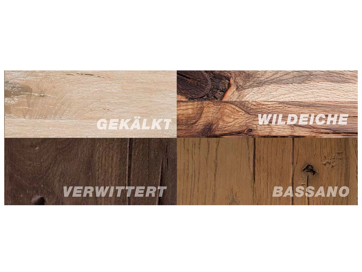 Für die Herstellung dieses Tisches wird hochwertiges, massives Eichenholz aus Wachstumsbeständen in ganz Europa gewählt, welches durch den individuellen Wuchs der einzelnen Bäume jedem Tisch eine ihm eigene, einzigartige Maserung und Farbnuance verleiht. Wachstumseigenheiten wie Druckstellen, Astlöcher, Risse und unterschiedliche Färbungen sind kein Grund zur Reklamation, sondern in der fachkundigen Handfertigung beabsichtigt und gewollt, um der natürlichen Schönheit der verarbeiteten Hölzer Ausdruck zu verleihen. Sie machen Ihren neuen Tisch zu einem wertvollen Unikat. Es liegt in der Natur des Holzes, dass es sich durch verschiedene Einflüsse wie Licht und Klima verändert. Von der Luftfeuchtigkeit bedingtes Aufquellen und Schwinden zeigt eine besonders positive Eigenschaft von Massivholz: es nimmt die Luftfeuchtigkeit Ihrer Räume auf und trägt so zum Ausgleich Ihres Raumklimas bei, welches mit 50-60% Luftfeuchtigkeit und 20°C als idealer Wohlfühlbereich empfunden wird.