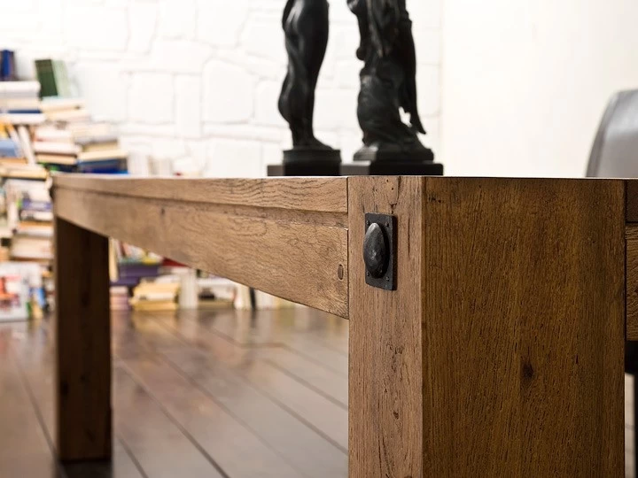 Für die Herstellung dieses Tisches wird hochwertiges, massives Eichenholz aus Wachstumsbeständen in ganz Europa gewählt, welches durch den individuellen Wuchs der einzelnen Bäume jedem Tisch eine ihm eigene, einzigartige Maserung und Farbnuance verleiht. Wachstumseigenheiten wie Druckstellen, Astlöcher, Risse und unterschiedliche Färbungen sind kein Grund zur Reklamation, sondern in der fachkundigen Handfertigung beabsichtigt und gewollt, um der natürlichen Schönheit der verarbeiteten Hölzer Ausdruck zu verleihen. Sie machen Ihren neuen Tisch zu einem wertvollen Unikat. Es liegt in der Natur des Holzes, dass es sich durch verschiedene Einflüsse wie Licht und Klima verändert. Von der Luftfeuchtigkeit bedingtes Aufquellen und Schwinden zeigt eine besonders positive Eigenschaft von Massivholz: es nimmt die Luftfeuchtigkeit Ihrer Räume auf und trägt so zum Ausgleich Ihres Raumklimas bei, welches mit 50-60% Luftfeuchtigkeit und 20°C als idealer Wohlfühlbereich empfunden wird.