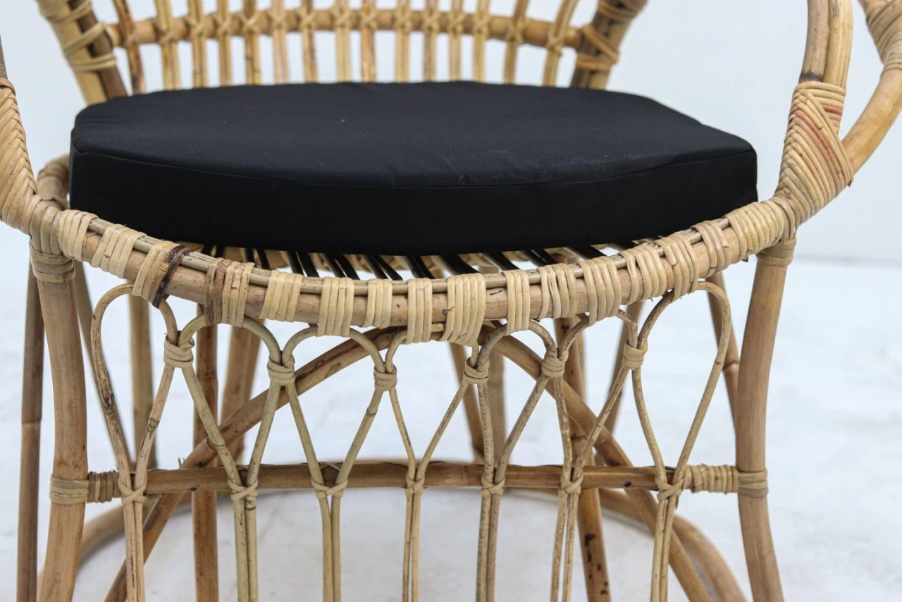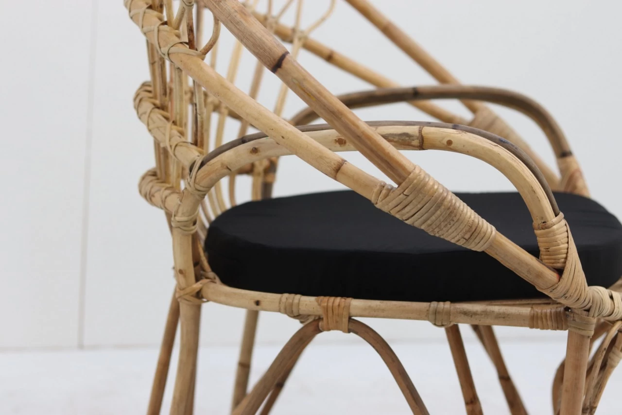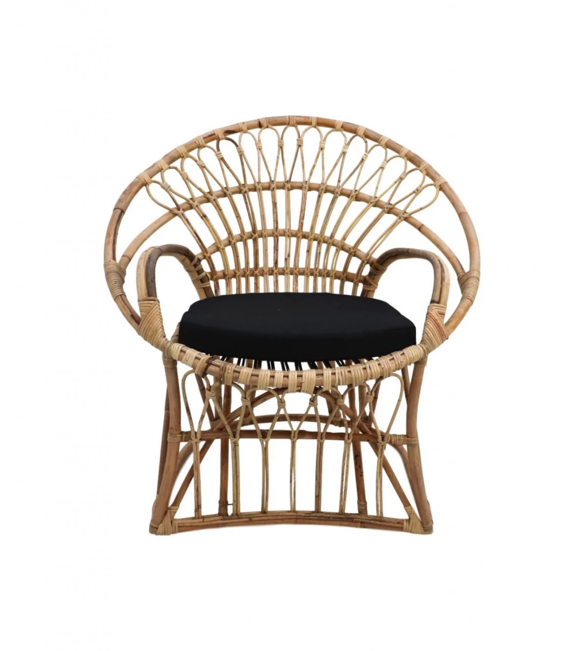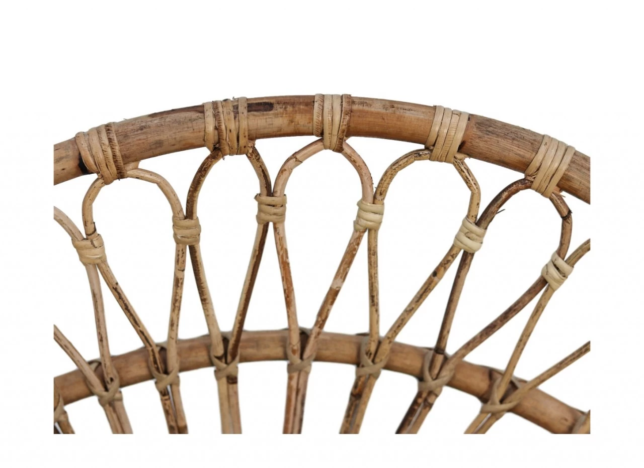 Der Rattan Stuhl Medina lädt zum Verweilen ein. Die runden Formen, Armlehnen und die geschwungene Rückenlehne bieten Komfort und definieren das harmonische Design des Stuhls. Es besteht aus Rattan und hat ein natürliches Aussehen, das jeder Atmosphäre Wärme und Komfort verleiht. Die Struktur der Rattanstreben sorgt auch für Leichtigkeit, damit der Stuhl im Raum nicht sperrig wirkt
