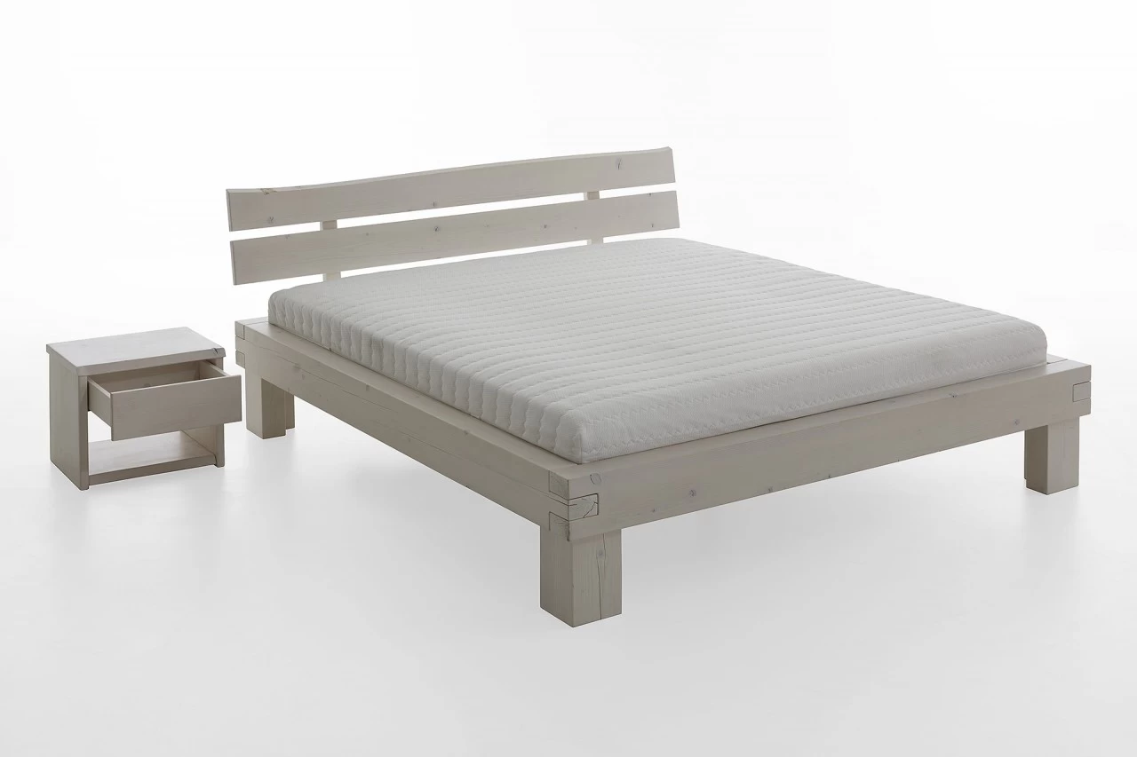 Relita Balkenbett Bellmund in Kernbuche massiv in Weiß