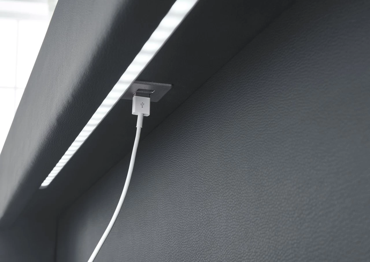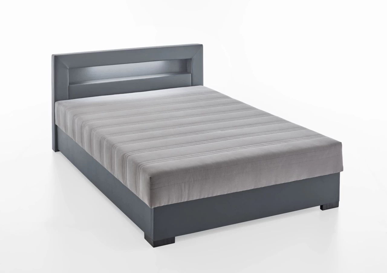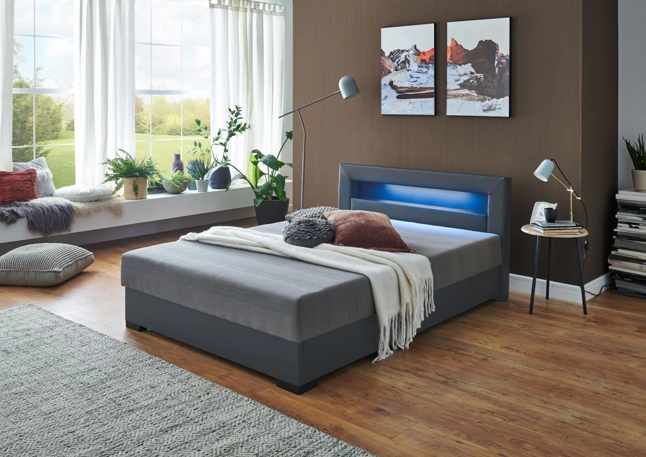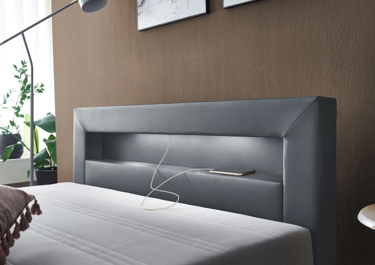 Relita Boxbett MINA mit LED & USB, Polsterbett grau 140 x 200 cm