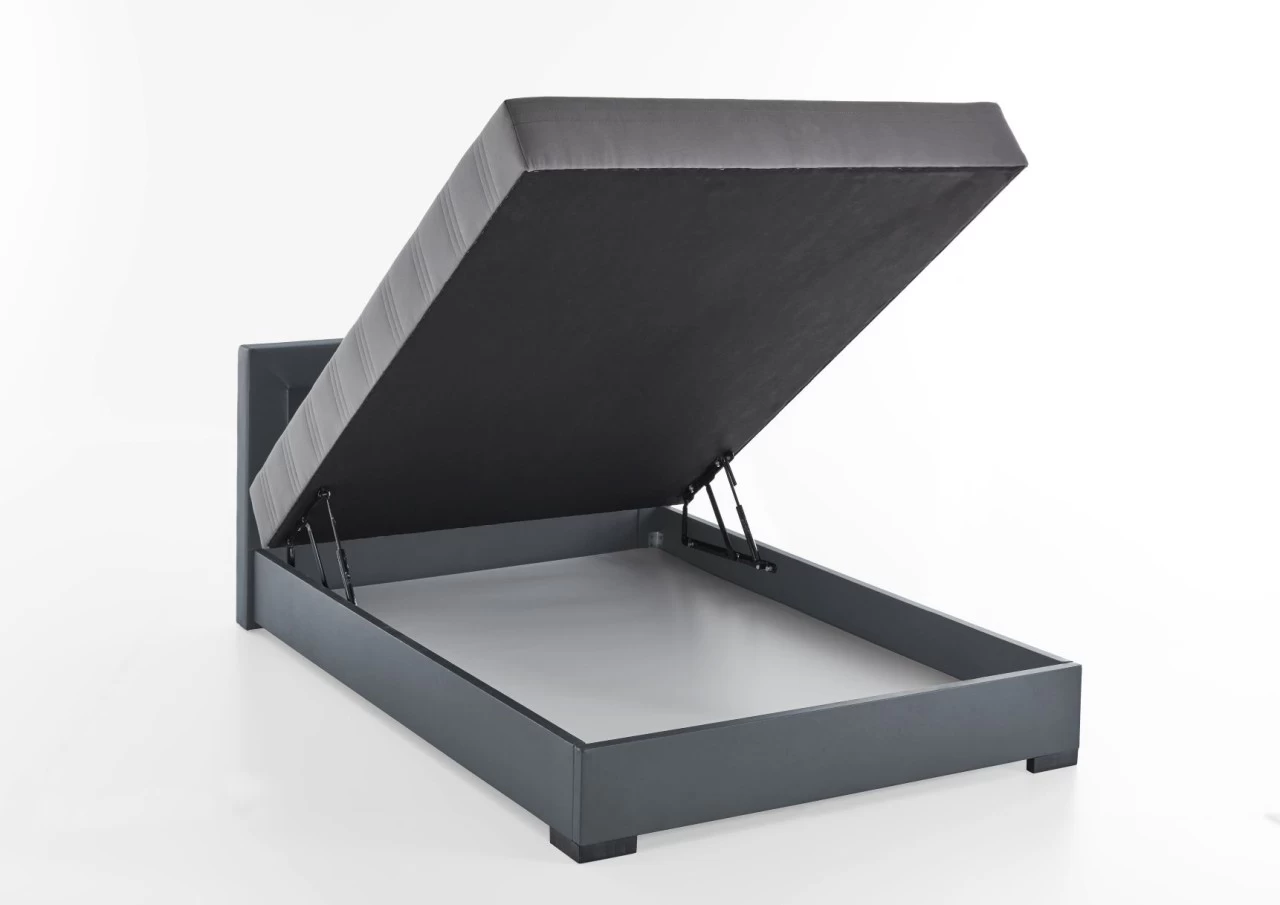 - Beschläge mit Gasdruckfeder seitlich am Bettkasten