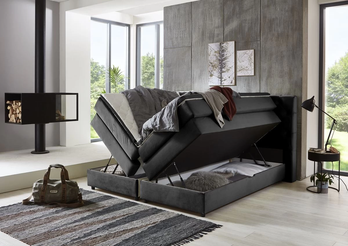Relita Boxspringbett Lancy 180×200 cm Anthrazit mit Topper + Bettkasten