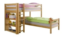 Praktische Raumsparlösung in L-Form. Das Etagenbett lässt sich natürlich auch zu 2 Einzelbetten umbauen.