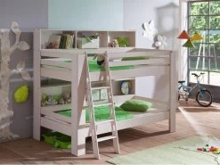 Relita Etagenbett Jan 90 x 200 cm mit Regal + Rollrost Buche massiv weiß