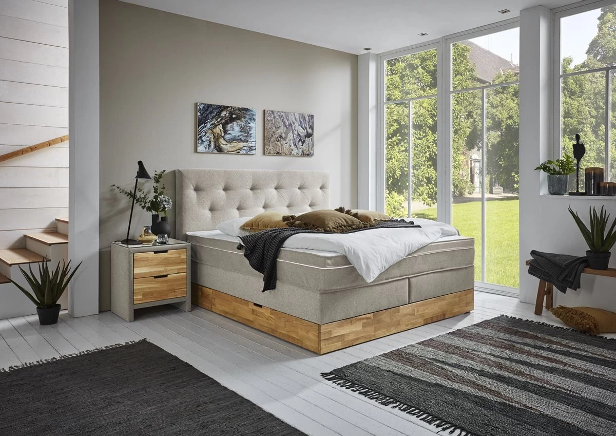 Passend zum Boxspringbett Films – mit Schubladen aus Wildeiche geölt.