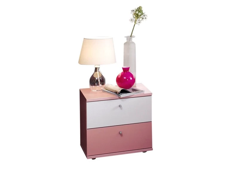 Nachtschrank Jenny hat die ideale Höhe, um neben einem Futonbett mit leicht erreichbarer Abstellfläche und Stauraum zusätzlichen Komfort zu schaffen. Die Kommode bringt eine Nachttischlampe auf richtige Höhe und bietet 2 Schubladen, um Ihre Nachtlektüre, Taschentücher und andere Annehmlichkeiten geordnet unterzubringen. Gefertigt ist Nachtkommode Jenny aus Spanplatte mit einem Dekor in der Farbe Rosa und einer Schubladenfront in Weiß. Der Nachttisch wird zerlegt mit Aufbauanleitung zur einfachen Selbstmontage geliefert.