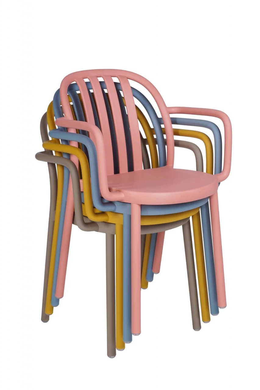 Mit weichen, einfachen Linien erinnert der Stuhl SUE an die Holzstühle von damals. Ein vielseitiger Stuhl mit Retro-Touch, der sich durch maximale Stabilität und höchsten Komfort auszeichnet. Sessel für den Innen- und Außenbereich. Den Stuhl Sue erhalten Sie mit oder ohne Armlehnen. Stapelbarer Sessel aus Polypropylen. Stark und stabil. Für den Gebrauch im Freien und in Innenräumen. Wasser-Drainage-System. Geschützt gegen UV-Strahlung