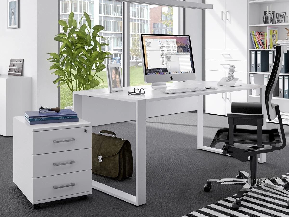 Schreibtischset 120 cm + Rollcontainer direct Dekor Weiß mit Kufenfuß