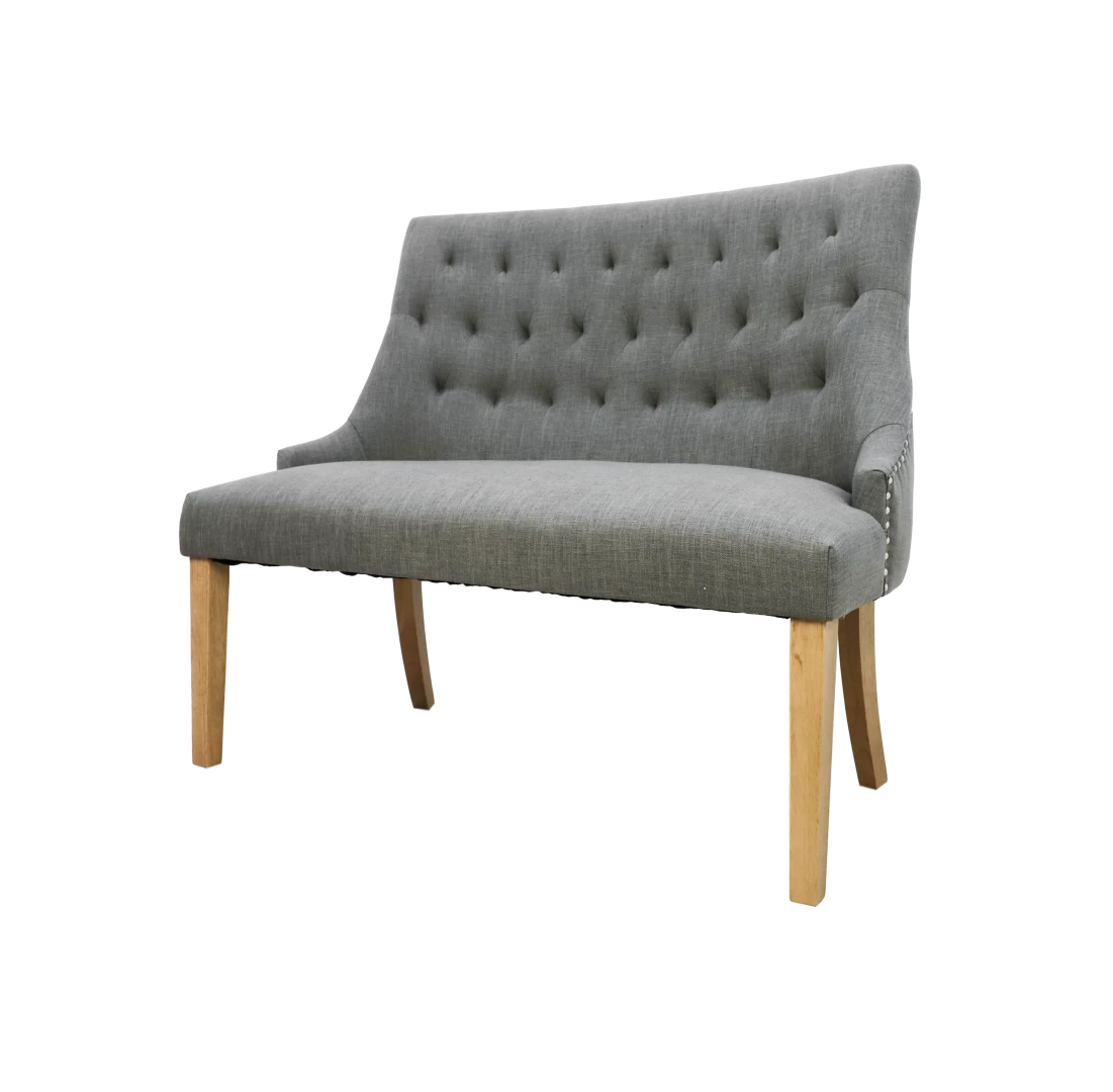 Die Sitzbank Royan harmoniert dank seines dezenten Charakters mit nahezu jedem Ambiente. Sein robustes Holzgestell verspricht eine lange Haltbarkeit und bildet einen stimmungsvollen Kontrast zum weichen Stoffbezug und der bequemen Polsterung.